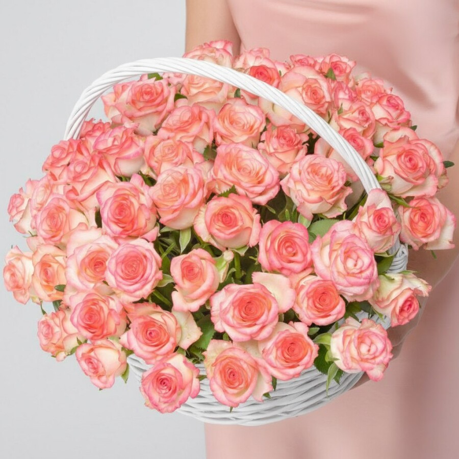 51 Бело-Розовая Роза Джумилия в корзине