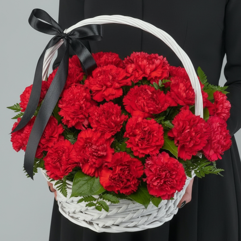 40 Красных Гвоздик в корзине (траур)