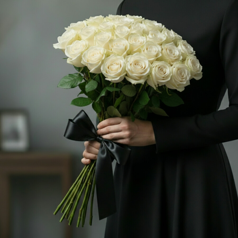 30 Белых Роз 50 см (Траур)
