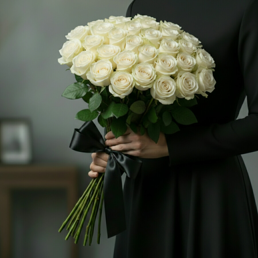 50 Белых Роз 50 см (Траур)