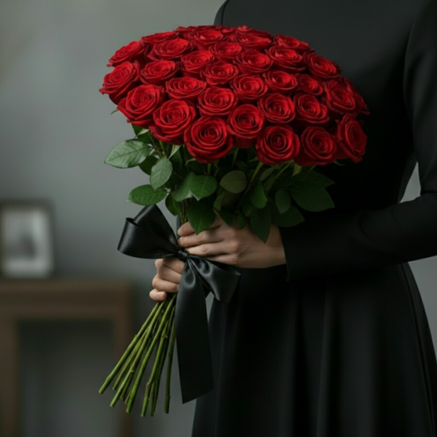 50 Красных Роз 50 см (Траур)