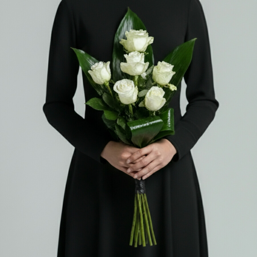 6 Белых Роз 50 см (Траур)