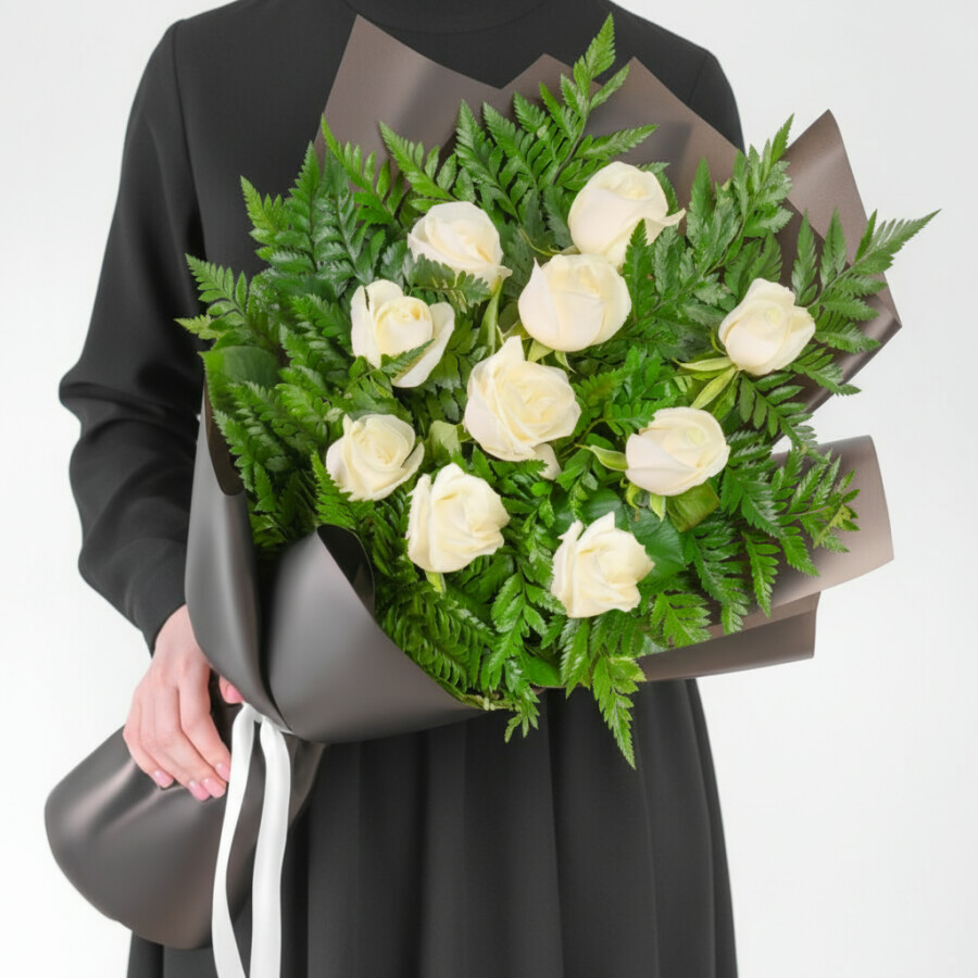 Траурный букет из Белых Роз и Папоротника