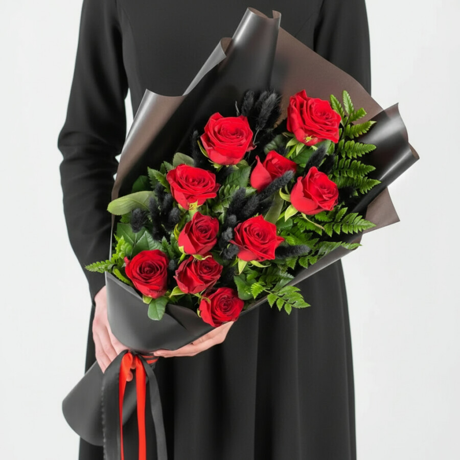Траурный букет из Красных Роз и Лагуруса