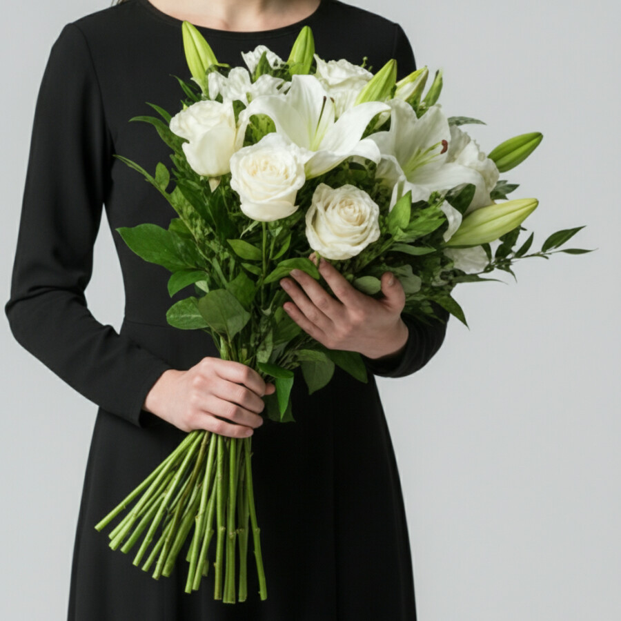 Траурный букет из Лилии Белой и Розы Белой