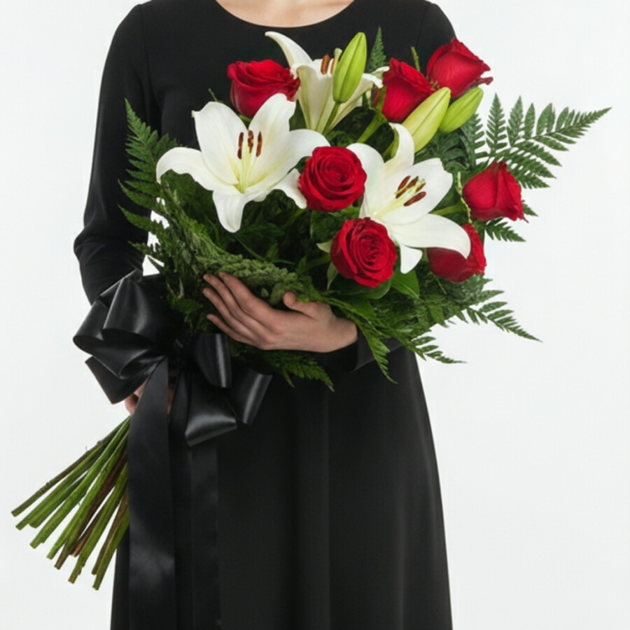 Траурный Букет из Белых Лилий и Красной Розы