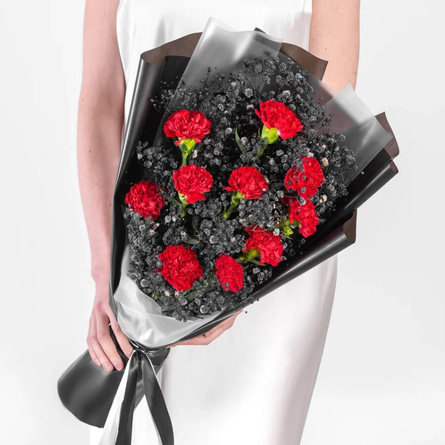 Траурный Букет из Красной Гвоздики и Черной Гипсофилы