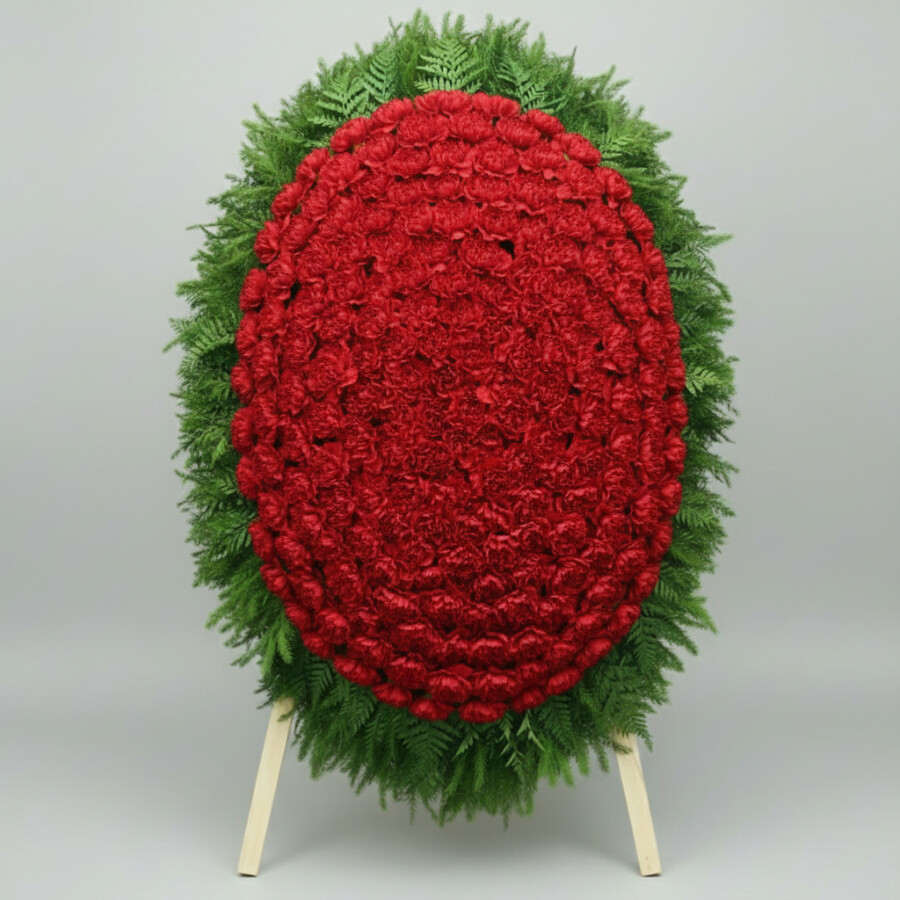 Траурный Венок из Красной Гвоздики и Папоротника (120 см)