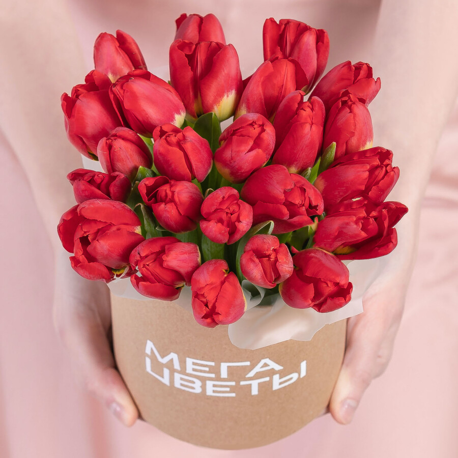 25 Красных Тюльпанов в коробке