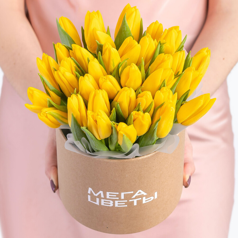 35 Желтых Тюльпанов Стронг Голд в коробке